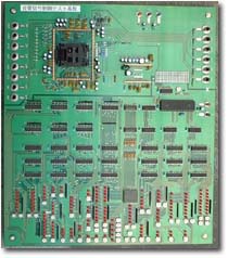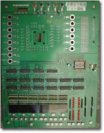半導体メーカが製作したICを各ユーザーに評価用として拡販するためのテスト用基板です。評価チップの制御は1チップマイコンによりシリアル制御にてコントロールしています。また、その機能表示にはドットLED、液晶LCDなどにて、その設定値を確認する事が可能です。